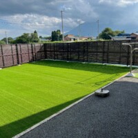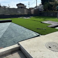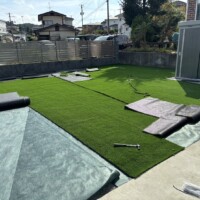 家族でBBQや子供達のプール遊び等を行う為に人工芝敷を行いました。