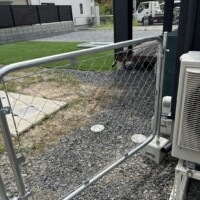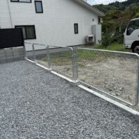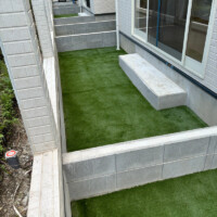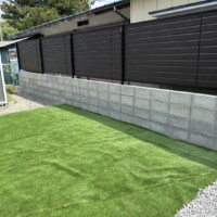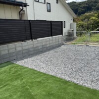アメリカンフェンス、目隠しフェンス、ブロック積み、人工芝、砕石敷き