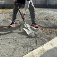 極力つなぎ目が少なくなるサイズを提案し、また、水はけが良くなる様に路盤も砕石を入れ工事を行いました。2期工事は10月末に植樹と床面にスギロードと言うSDGsの商品を使った工事を行います。